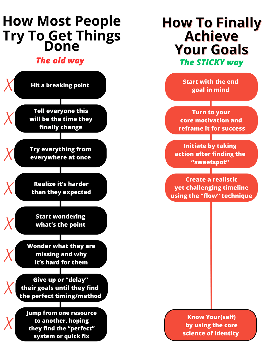 This is why I created the 5-step "STICKY" framework to let you get things done, yet without having to force yourself to do it, rely on willpower or motivation...